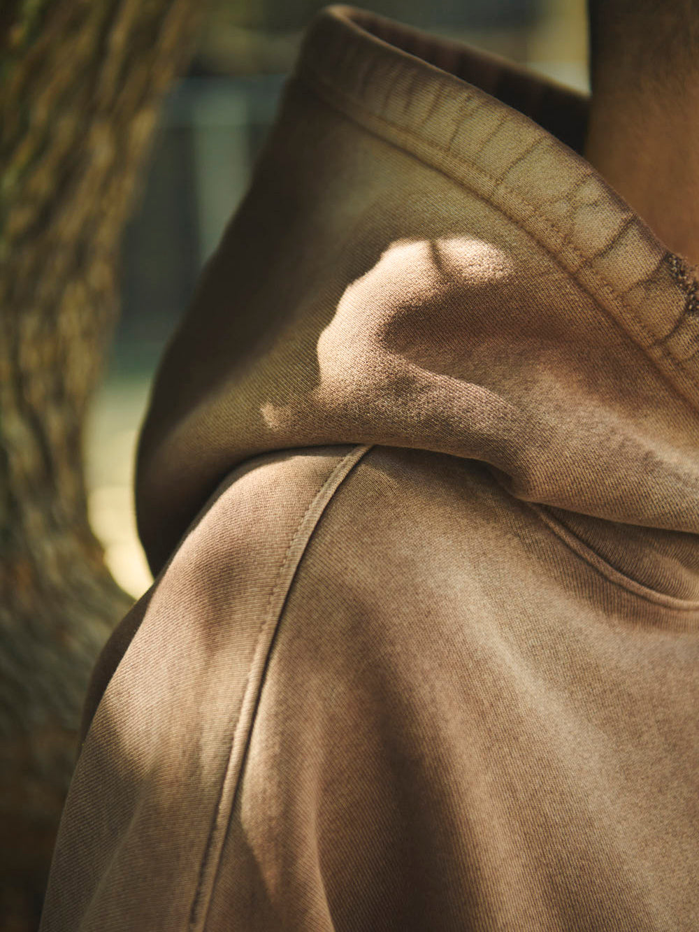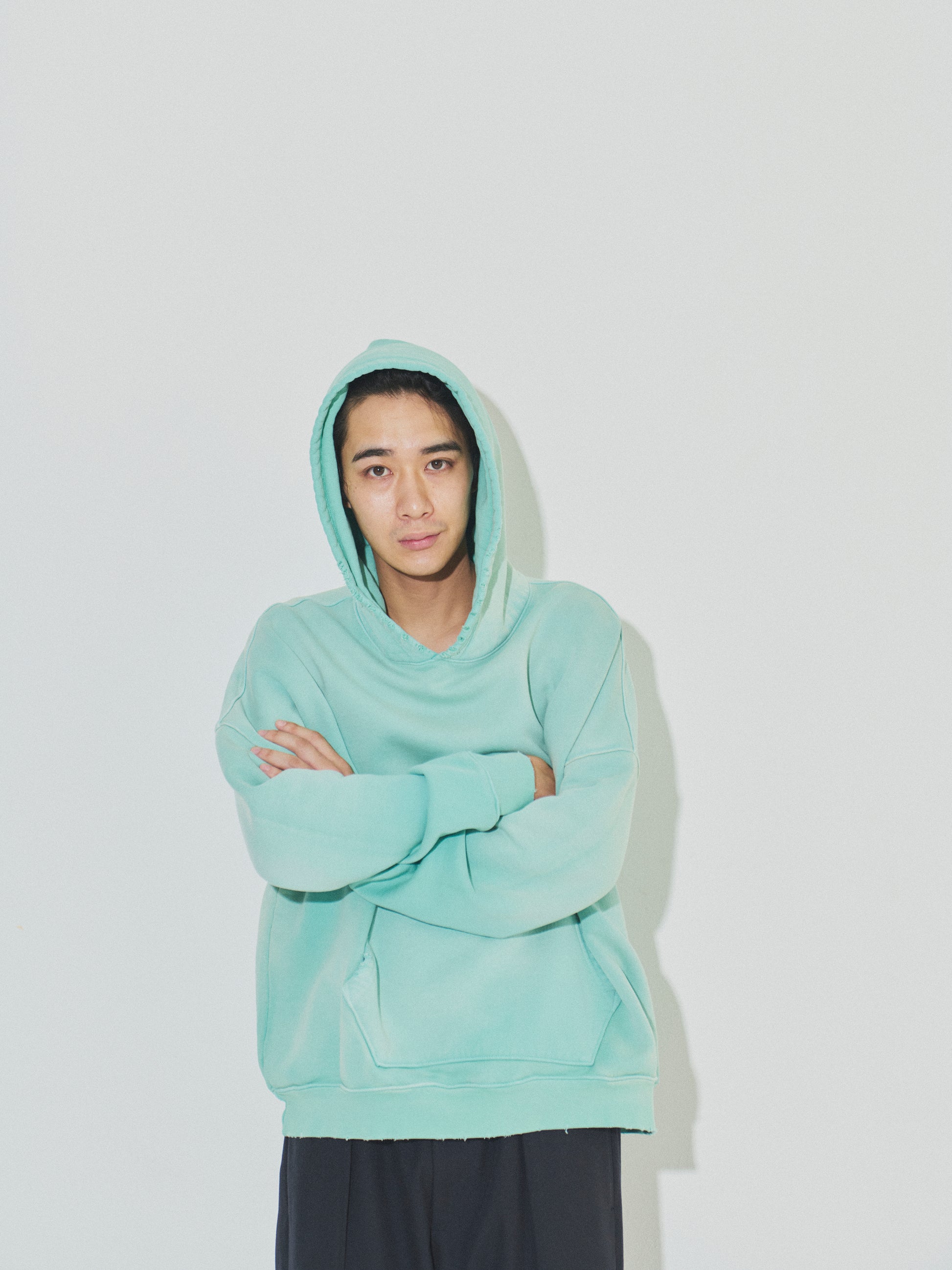 Fleece素材(裏起⽑スウェット)を使⽤しており、素材の特性上着用時に端⽷が付くことがあります。洗濯を繰り返すことでおさまっていきますので、ご理解の上、ご購入お手続きをお願い致します。