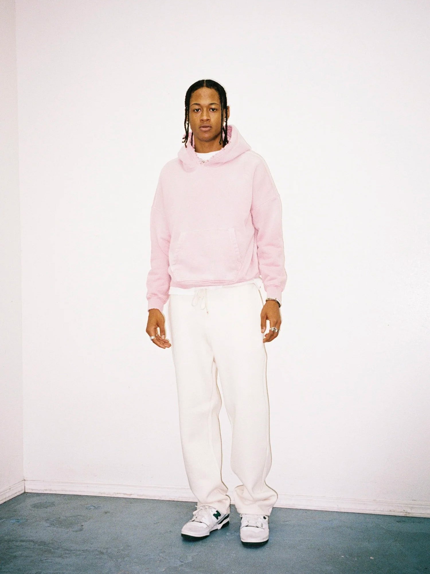 Fleece素材(裏起⽑スウェット)を使⽤しており、素材の特性上着用時に端⽷が付くことがあります。洗濯を繰り返すことでおさまっていきますので、ご理解の上、ご購入お手続きをお願い致します。